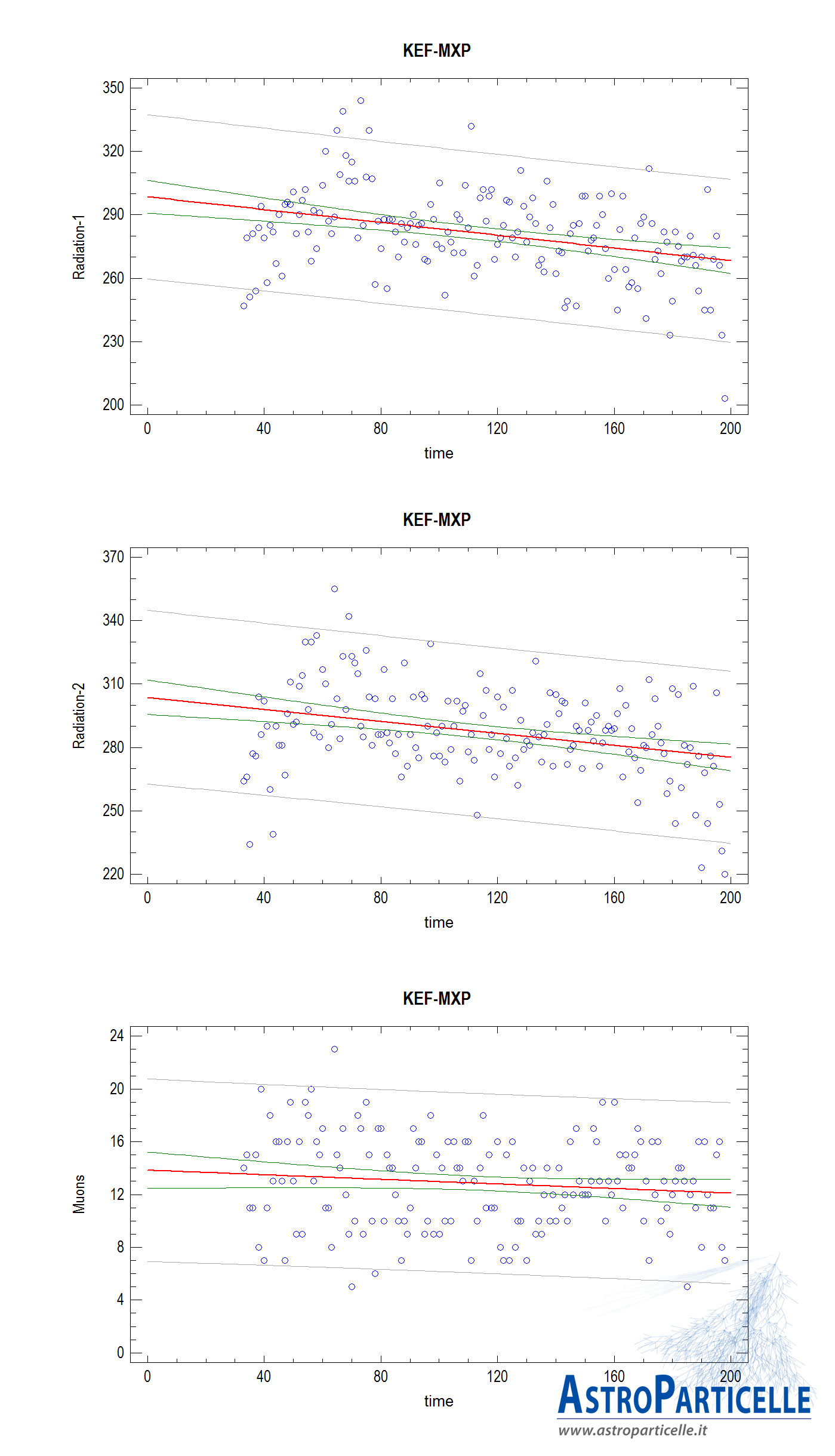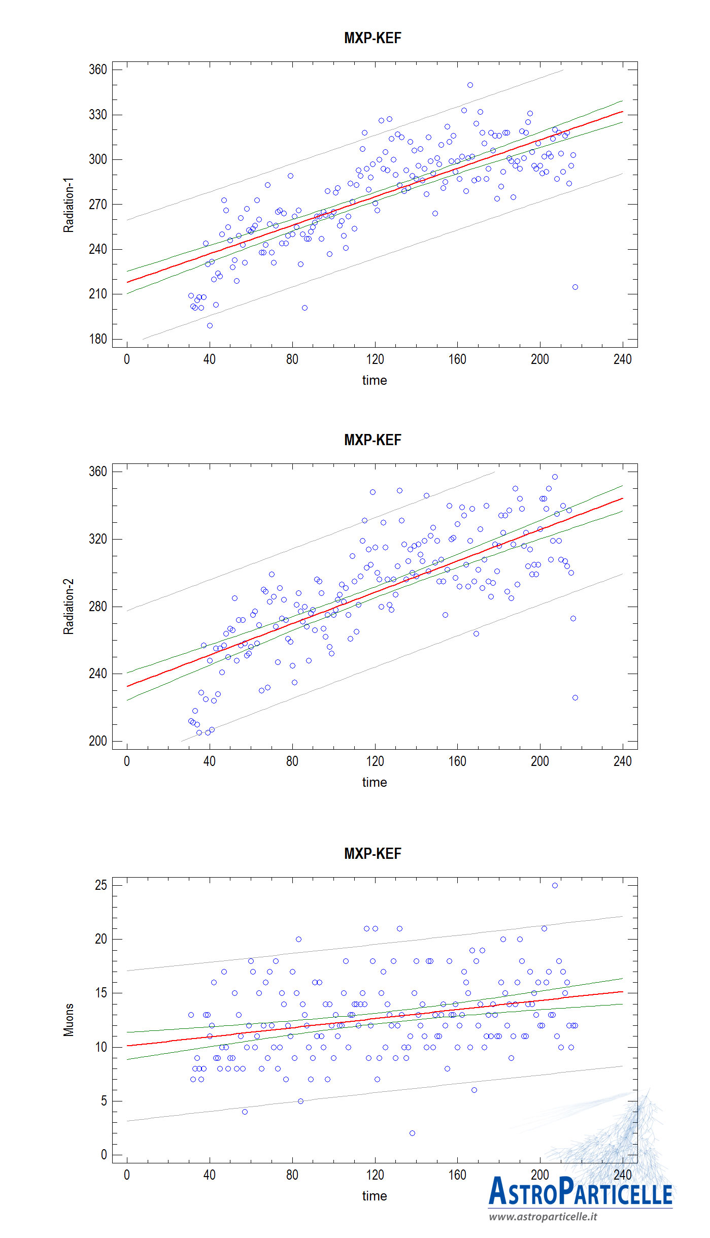 Questa apparente anomalia può essere interpretata alla luce di fattori esterni come l’attività solare: variazioni temporanee del campo magnetico solare o flussi di particelle solari ad alta energia possono modulare il flusso di radiazione cosmica, aumentando temporaneamente i valori anche verso latitudini più basse. Altre possibili cause includono variabilità atmosferica o fenomeni legati alla diversa quota aerea, è invece da escludere un problema strumentale in quanto la coerenza tra i tre canali suggerisce un effetto reale, legato all’ambiente cosmico.Analisi e considerazioni